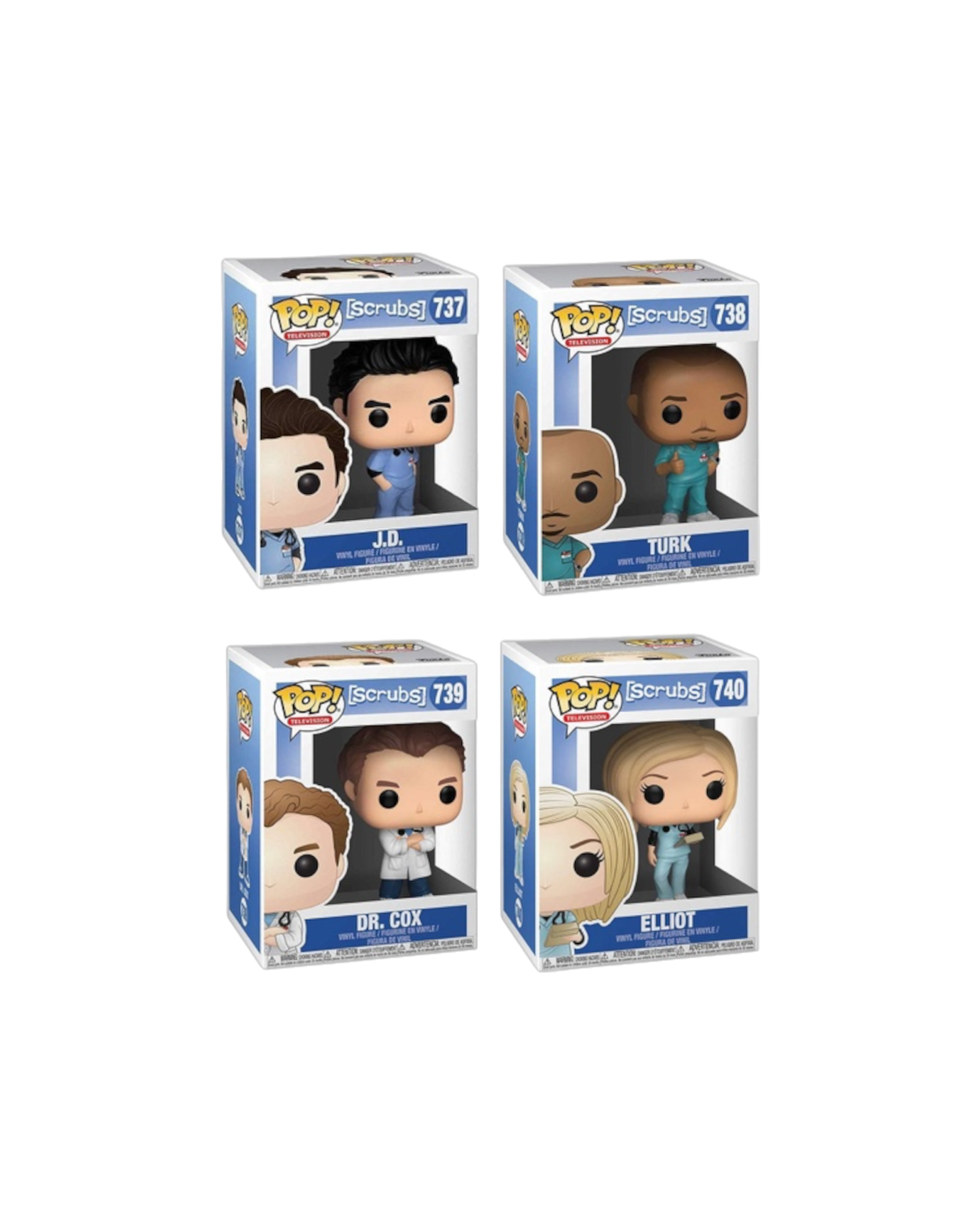 Bring home an exclusive Funko Pop! set featuring 4 unmissable characters from the Scrubs universe.
